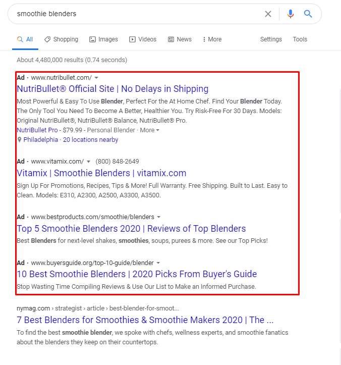 PPC 广告是宣传您的产品的好方法 – 特别是因为它们出现在搜索结果的上方。更不用说,46% 的页面点击进入前 3 个 PPC 广告。