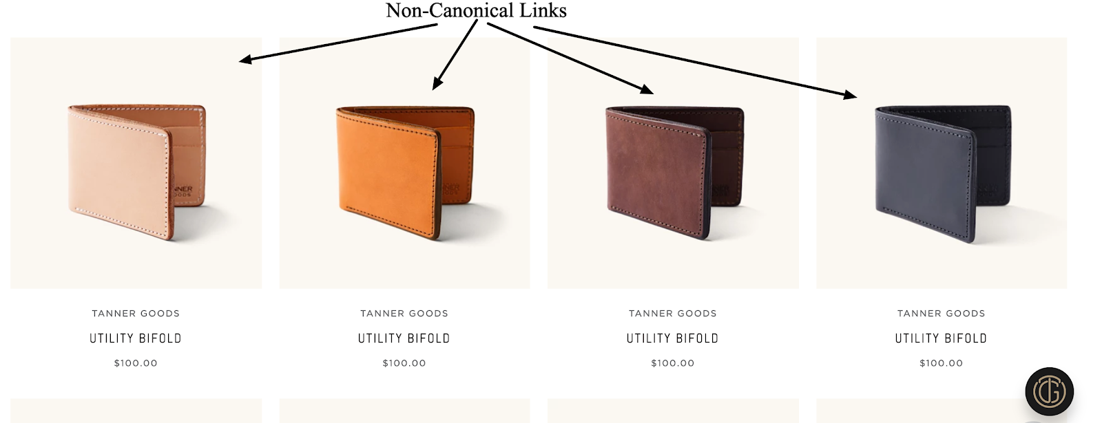 同样,当网站使用指向其他颜色变体的“样本”内部链接时,我们还看到 Shopify 链接到 URL 的非规范版本。