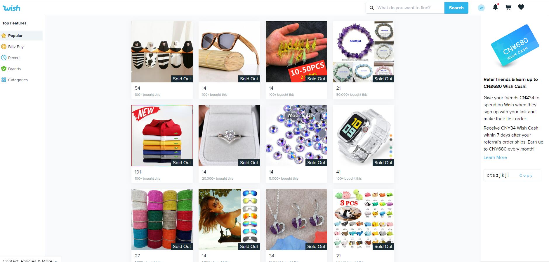北美前三购物平台、有区于传统wish的用户更趋向于年轻化 产品个性 有趣 好玩的购物主题,全球约5亿用户。